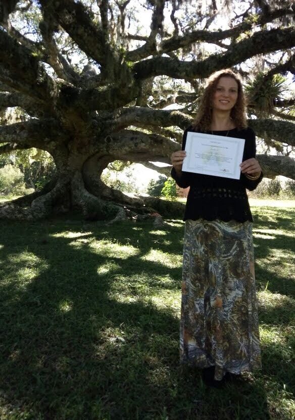 Me tornei Instrutora de Yoga, com formação pela Instituição Internacional Ananda Marga, onde recebi o nome espiritual Anúcara (se pronuncia Anutchara), com significado muito singelo e profundo: Humildade.